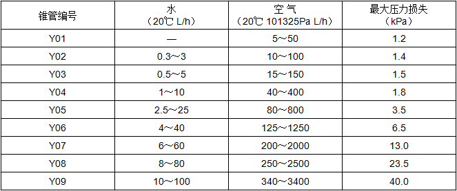 二、微小流量金屬管浮子流量計測量范圍
